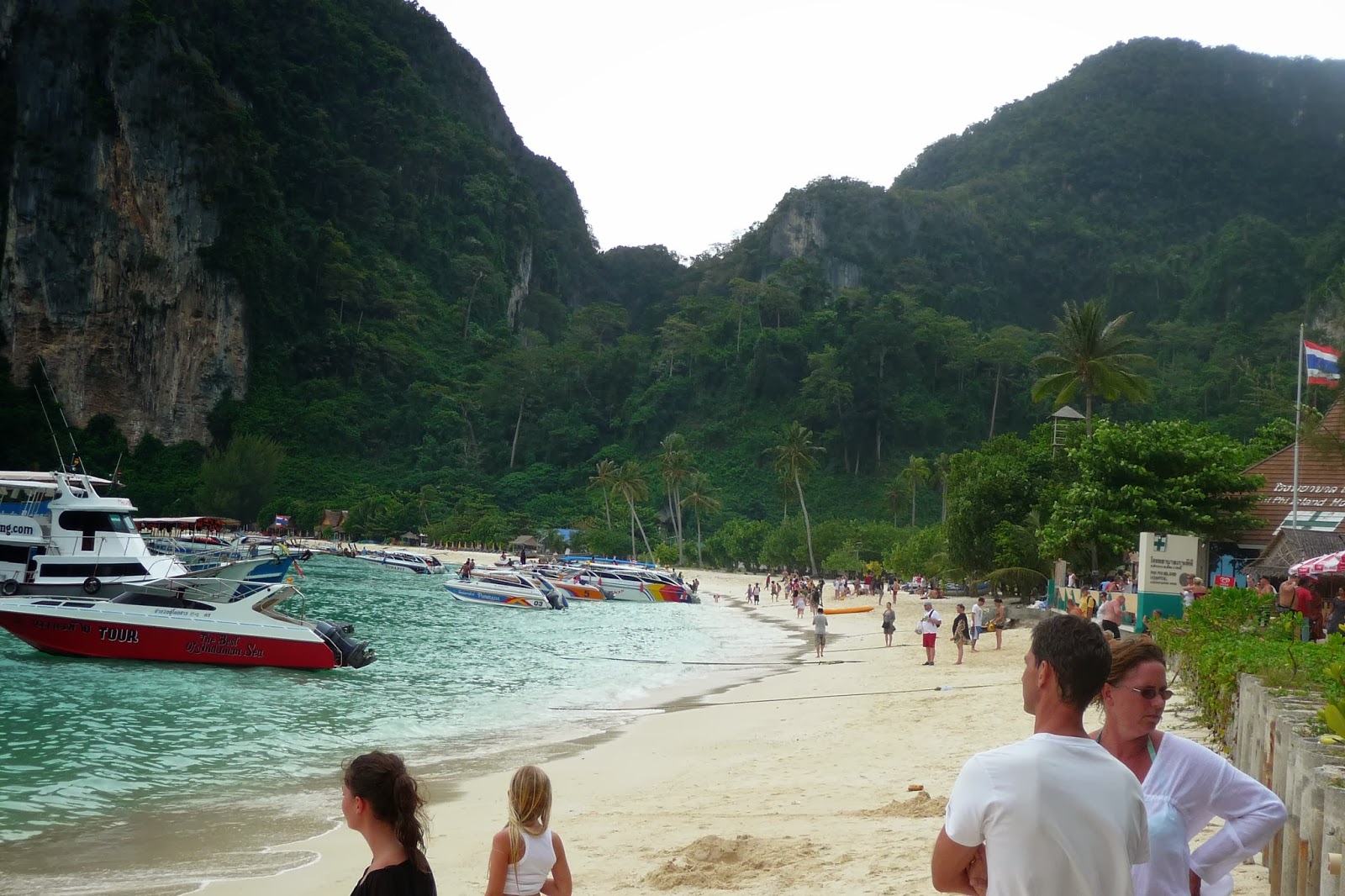 Phi Phi, Maya bay – paikka olisi paratiisi, jos turisteja olisi vähemmän. Nyt Maya bayiin tuodaan joka päivä pikaveneilla turisteja ja ranta on aivan täynnä ihmisiä.
