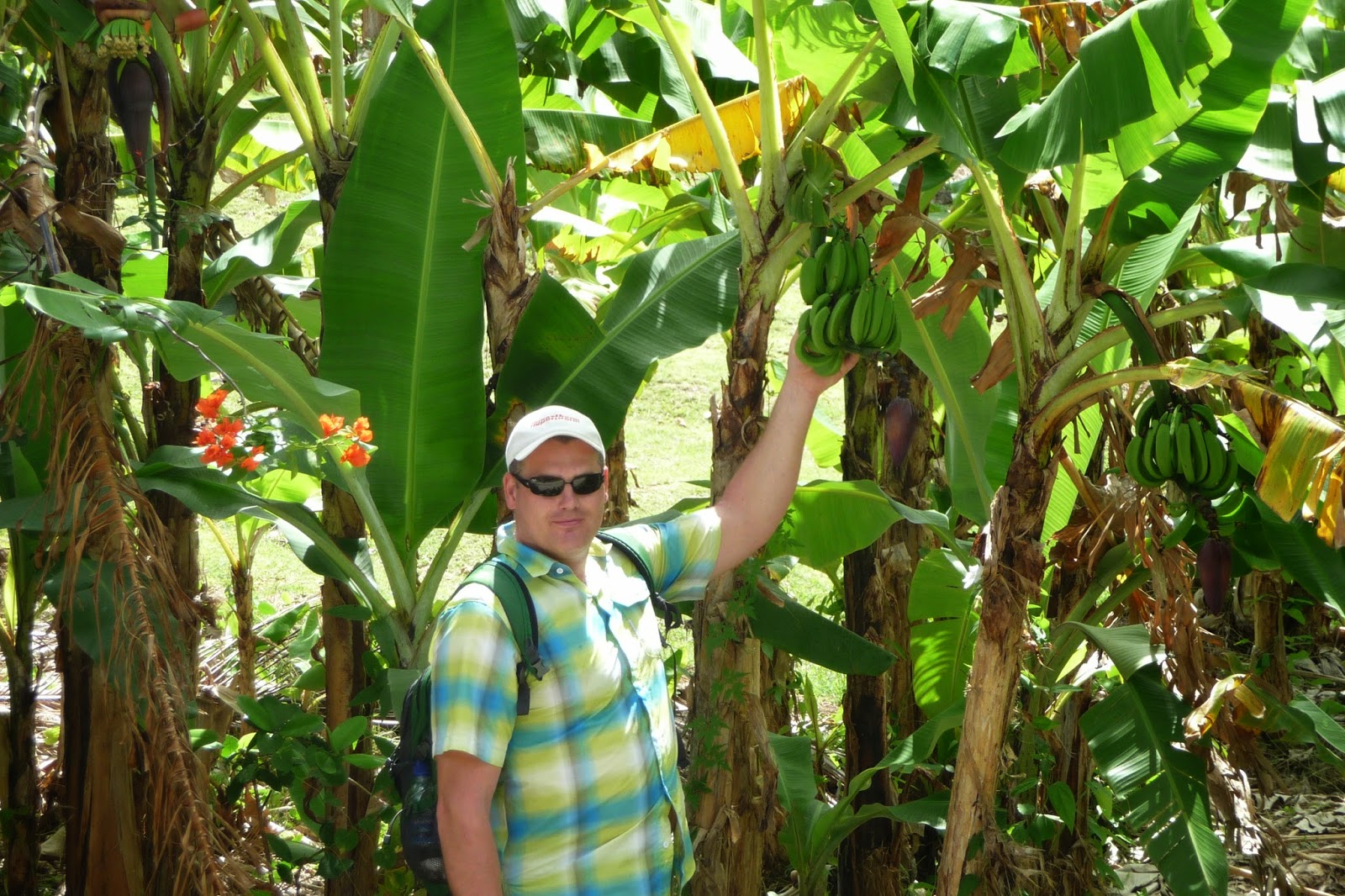 Ensimmäinen pysähdyspaikka saarikierroksella oli trooppinen puutarha, joka sijaitsi keskellä sademetsää ja banaaniplantaaseja. Puisto ei ollut kovin iso, mutta todella hienosti toteutettu. Puutarhassa oli paljon kukkia, erilaisia kasveja ja erittäin vanhoja puita. Siinä oli myös paikallinen käsityökauppa, jossa myytiin käsin värjättyjä kankaita ja niistä tehtyjä vaatteita. Paljon oli myös muuta käsityötä.