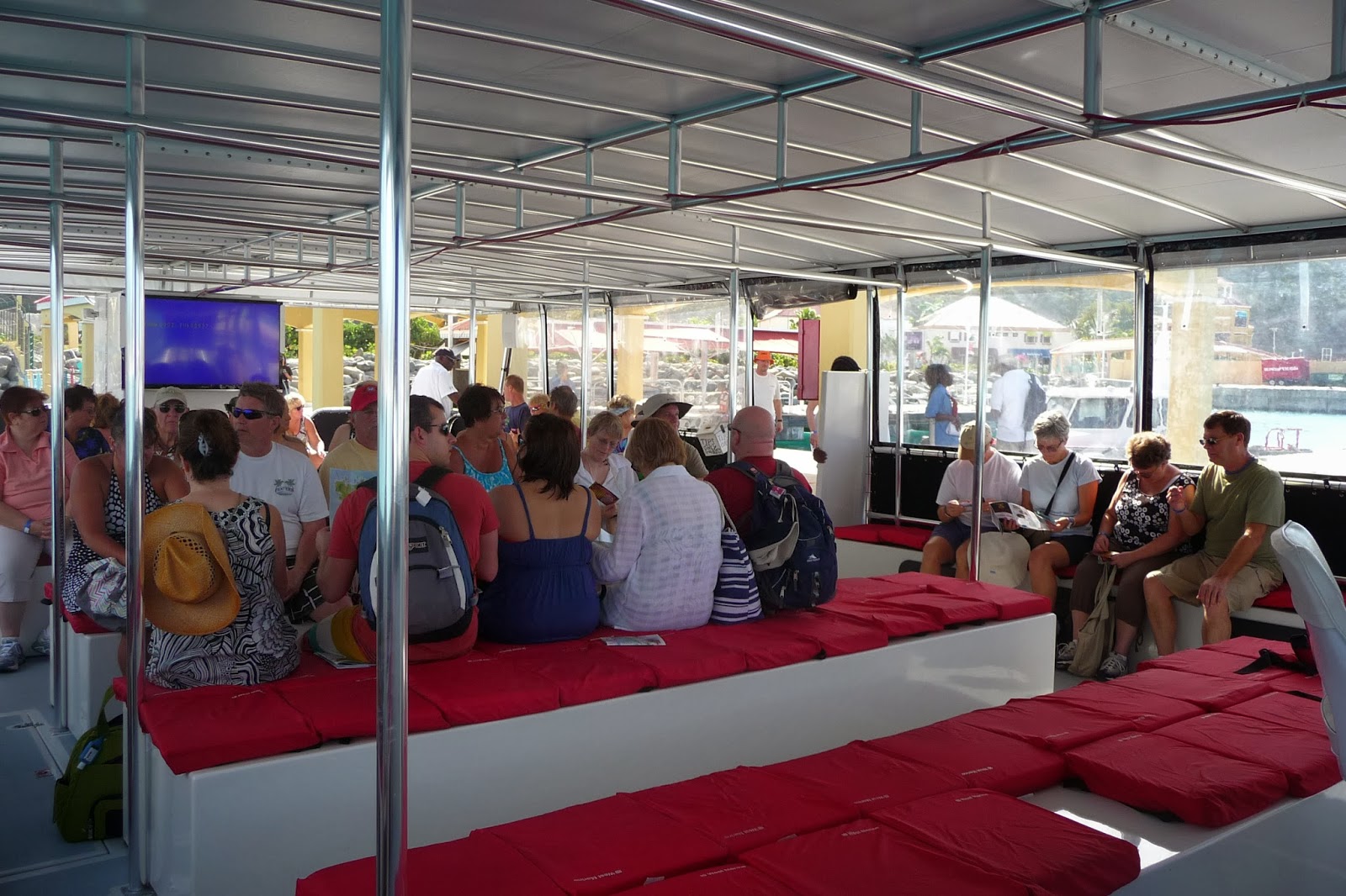 Philipspurgin kaupunkiin pääsee yhteysaluksella eli laiva pysähtyy hieman kauempana. Yhteysaluksen hinta meno/paluu oli muistaakseni 7 $/hlö. Yhteysaluksella meno oli kuin discossa. Aluksella olivat isot telkkarit, jossa pyörivät karibialaiset musiikkivideot. Miehistö viihdytti matkustajia oikein kunnolla.