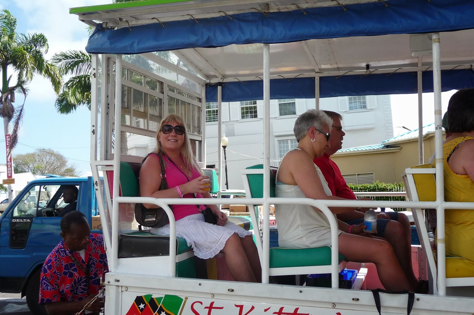 Lähdettiin kävelemään autolle ja kohta meille selvisi, että kuski meinasi tehdä saarikierroksen  todella pienellä autolla eli retkestä ei olisi tullut kovin mukava. Tiedettiin, että tiet eivät ole missään Karibian saarella kovin hyvät eli sellaisella pikkuautolla emme ole todellakaan menossa mihinkään. Sanottiin, kiitos ei ja lähdettiin kävelemään takaisin, jossa nämä muut myyjät olivat. Ei ehditty kun minuutti kävellä kunnes huomattiin, että yksi kuski ja pari turistia kävelivät myös parkkipaikalle. Kysyttiin, että ovatko he mahdollisesti menossa saarikierrokselle ja mahtuisimmeko mukaan? Meidän onneksemme kuskilla oli tila-auto ja saksalaiset ottivat meitä mielellään mukaan. Kun meitä oli autossa 4 hlö, silloin hinta olikin vain 30 $/hlö. Oltiin todella tyytyväisiä.