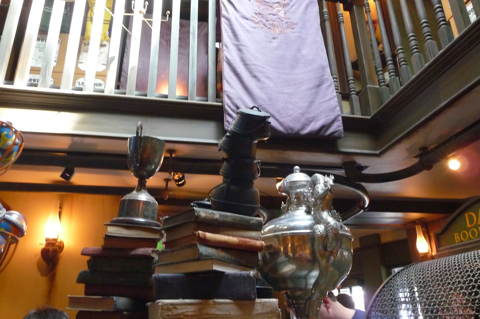 Ensimmäiseksi mentiin siis Island of Aventure huvipuistoon, jossa Harry Potter puisto sijaitsee. Käytiin myös joissakin muissakin laitteissa, mutta kun jokaiseen laitteeseen joutuu jonottamaan noin 1h, siinä ei yhden päivän aikana ehdi käydä kovin monta laitetta. Harry Potter puisto on todella suosittu ja ihmisiä oli alueella aivan valtavasti. Mieheni lähti yhteen laitteeseen, johon en uskaltanut mennä eli mulla oli hyvin aikaa tutkia Harry Potterin puisto oikein kunnolla. Kävin kaupoissa, jotka ovat kun suoraan leffasta. Eli siellä myytiin taikasauvoja, kyniä, vihkoja, vaatteita, karkkeja, pehmopöllöjä ja kaikkea muuta tavaraa, jotka ovat tulleet tutuksi Harry Potter leffoista. Hintataso tarvaroille on kyllä todella tyyris eli päätin sitten olla ostamatta mitään. Harry Potter puistossa on myös linna, johon jouduttiin jonottamaan 1,5 h. Linna on kuitenkin sisältä todella vaikuttava eli voi sanoa, että tämä on todella hyvä kopio leffoissa nähdystä linnasta.