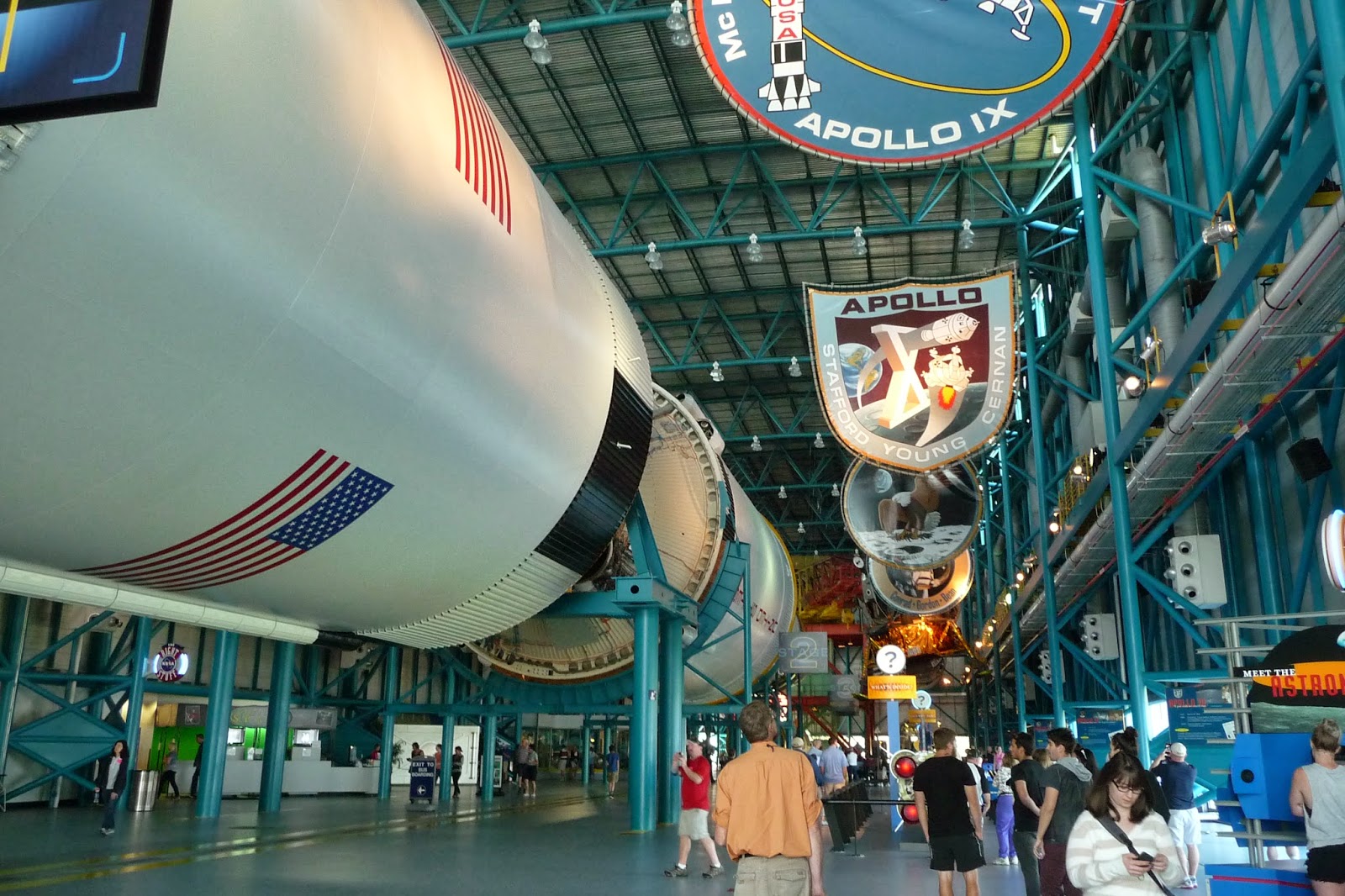 Kennedy Space Centerin koko alue on todella laaja. Pienemmällä alueella on näyttelyalue, jossa päästiin kävelemään, mutta varsinaisella avaruuskeskuksen alueella kierrettiin bussilla. Näyttelyalueella on erilaisia näyttelytiloja, kolmiulotteinen IMAX teatteri ja vaikuttava Atlantis avaruusaluksen esittelyhalli. Bussikuljetuksella taas päästiin hyvin lähellä laukaisualuetta ja nähtiin myös halli, jossa sukkuloita valmistetaan. Kierroksella nähtiin myös valtavan kokoinen laite, jolla kuljetetaan sukkuloita laukaisupaikalle. Kierroksen yksi pysähdyspaikka oli Apollo/Saturn V keskus, jossa esitellään Apollo avaruusohjelmaa ja aivan valtavaa Saturn V rakettia, jota matkoihin käytettiin. Toinen iso halli on siis näyttelyalueella ja siinä näkee Atlantiksen, jolla tehtiin yli 30 onnistunutta avaruuslentoa. Näyttely on todella hyvin toteutettu ja siinä saa tutustua itse Atlantikseen ja kaikkeen muuhun, joka liittyy avaruuteen ja miten avaruussukkuloita rakennetaan. Erittäin opettavainen paikka. Kennedy Space Center on mielestäni erittäin vaikuttava paikka ja jos Orlandossa olet käymässä, kannattaa tässä ehdottomasti käydä.