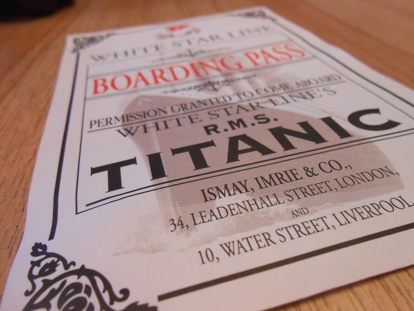 Oltiin varauduttu jonottamaan pitkään, koska viikonloppuna jonot olivat 2,5 h. Meillä kävi todellakin tuuri, jono oli lyhyt ja odotettiin lippujonossa noin 10 min. Todella loistava ajoitus 🙂 Liput oli todella upeat eli jokainen vierailija sai itselleen taannoisen todellisen matkustajan nimellä varustetun maihinnousukortin. Eli siinä todellakin voi itsensä kuvitella Titanicin matkustajaksi.