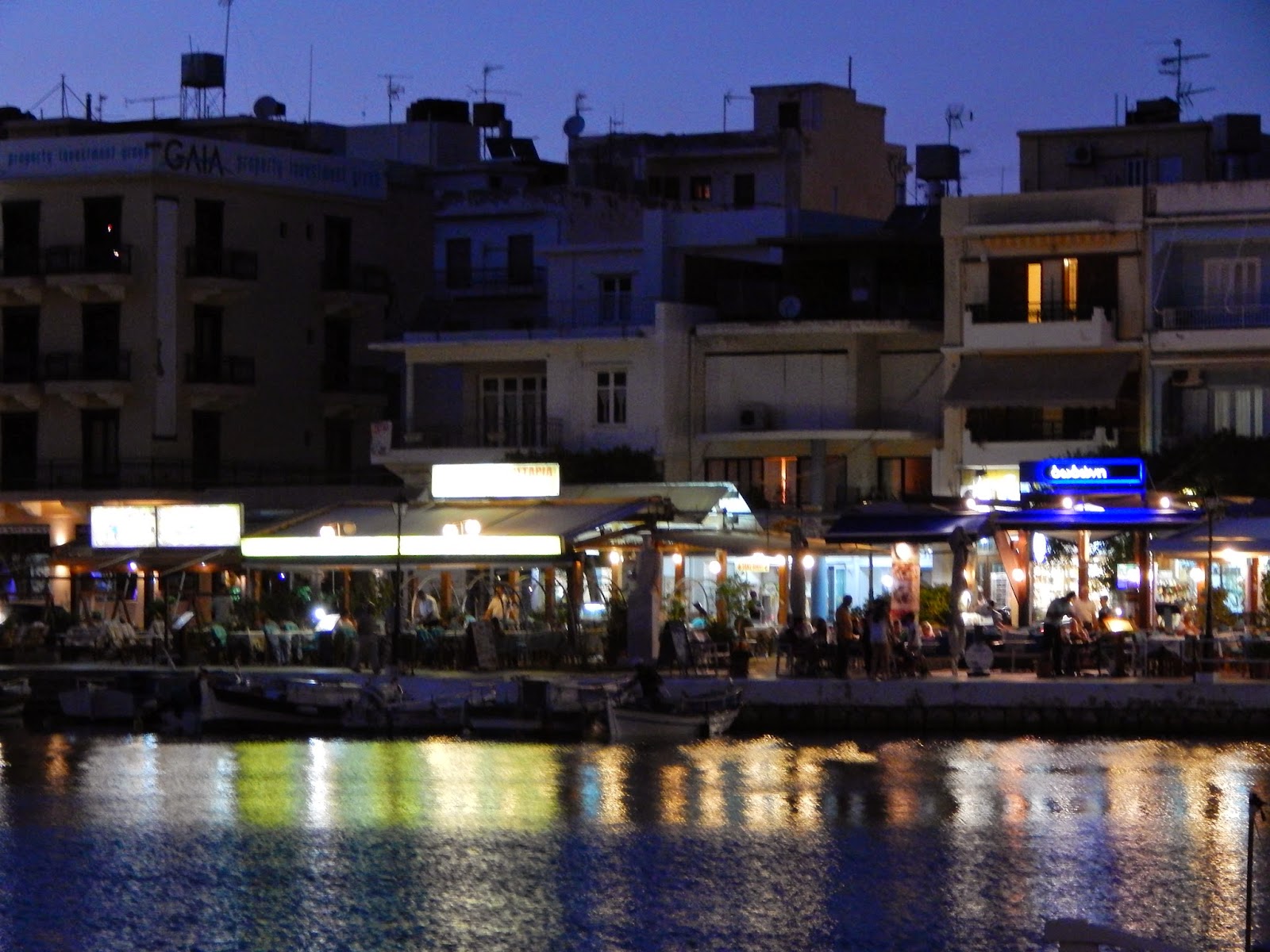 Illalla lähdettiin Hersonissokseen tutustumaan iltaelämään. Kadut olivat täynnä ihmisiä, suurin osaa brittejä ja venäläisiä. Eli kysymyksessä oli aikamoinen turistirysä. Venäläisille oli myös paljon turkiskauppoja, kyltit olivat kaikki venäjäksi ja myyjätkin taisivat puhua venäjä. Koko kaupunki oli täynnä piraattituotteita myyviä kauppoja. Onneksi joukkoon mahtui myös Kreetan oliiviöljyä, mausteita, keramiikka, nahkatuotteita ja luonnonkosmetiikkaa myyviä kauppoja. Rannalla oli paljon ravintoloita ja sisäänheittäjät olivat aika ärsyttäviä. Melkein joka ilta oli keskustassa disco ja joku konsertti. Oltiin niin onnekkaita, että meidän asunto ei ollut keskustassa vaan saatiin paettua tätä hälinää rauhalliseen asuntoomme. Kuultiin kyllä musiikkia meidän asunnolle asti, mutta se oli ihan kiva.