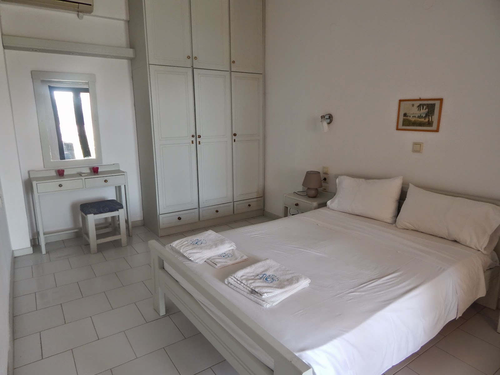 Asunto sijaitsee todella hyvällä paikalla ja terassilta on suora näkymä merelle. Kyseinen asunto on talossa, jossa on 4 asuntoa. Kolme pienempää asuntoa on alakerrassa ja iso villa yläkerrassa. Asuntoihin voi tutustua Terpsichori Villa ja Apartments sivuilla. Asunto on yksinkertaisesti sisustettu, mutta kaikki tarvittava löytyy. Myös keittiövarustus on todella hyvä. Kylppäristä löytyy myös pesukone.