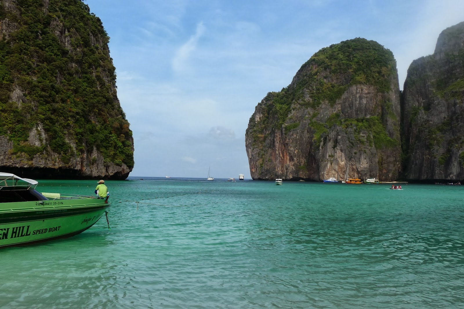 Phi Phi, Maya bay – paikka olisi paratiisi, jos turisteja olisi vähemmän. Nyt Maya bayiin tuodaan joka päivä pikaveneilla turisteja ja ranta on aivan täynnä ihmisiä.