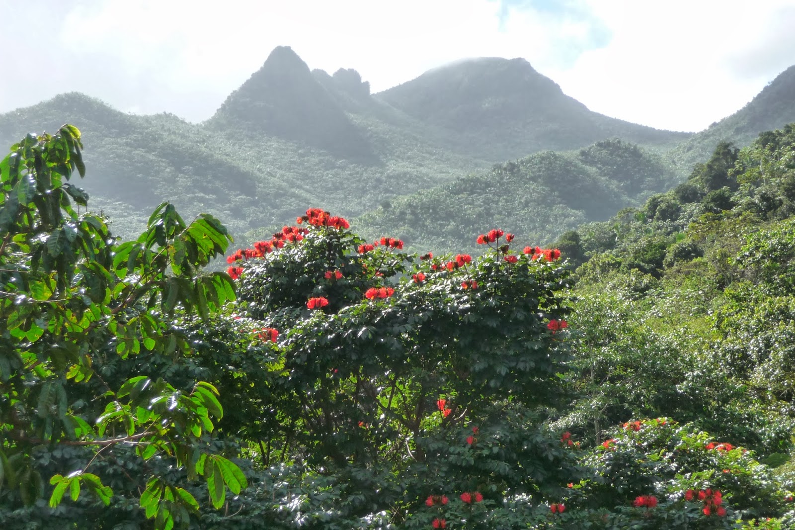 Seuraavana päivänä oli tarkoitus mennä El Yunque sademetsään. Olin jo etukäteen katsonut kuvia sademetsästä ja se näytti todella vaikuttavalta. Sademetsäreitti oli aika pitkä ja autolla piti siirtyä eri pysähdyspaikoista toiseen. Siinä sitten käveltiin eri reittejä ja matkan varrella oli lukuisia vesiputouksia ja mahtavaa luontoa. Toivottavasti kuvista näkee pienen osan tämän sademetsän mahtavuudesta.