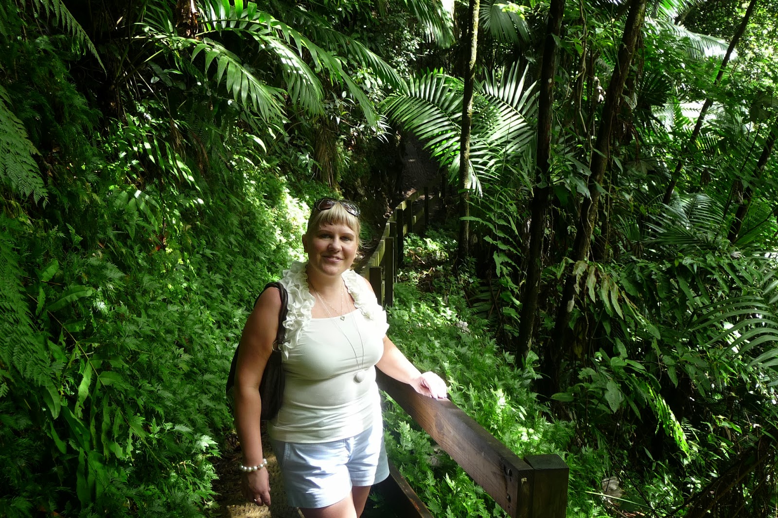 Keskellä sademetsää tapahtui myös epämiellyttävä kokemus – nimittäin vuokra-automme ei yhtäkkiä enää käynnistynyt. Siinä sitten ihmeteltiin varmaan tunti kun nähtiin sademetsän huoltomies, jolta pyydettiin apua, koska meidän puhelimilla ei ollut kenttää ja sitten kun kenttä ilmestyi, emme päässeet jostain syystä soittamaan auto-vuokraukseen. Huoltomies soitti vuokrausfirmaan ja sieltä luvattiin lähettää hinausauto. Kukaan ei siinä vaiheessa puhunut, että tuodaanko meille myös toinen auto. Mieheni sitten ajatteli, että hän vielä katsoo konepellin alta, että olisiko vielä jotain tehtävissä. Hän huomasi, että auton akku ei ollut kunnolla kiinni ja eihän silloin auto voi oikein käynnistyä. Sen jälkeen kun mieheni oli kääntänyt akun paikoilleen (sen verran kun nyt pystyi ilman työkaluja), auto onneksi käynnistyi. Soitettiin sitten takaisin, että ei tarvitse enää toimittaa hinausautoa, vaan me jatketaan matkaa. Loppupäivä vietettiin sitten sademetsässä upeista maisemista nauttien. Matkalla takaisin kaupunkiin (San Juan) käytiin rannalla ja vielä yhdessä outletissä, jossa olivat myös todella edulliset hinnat ja tehtiin hyviä löytöjä.