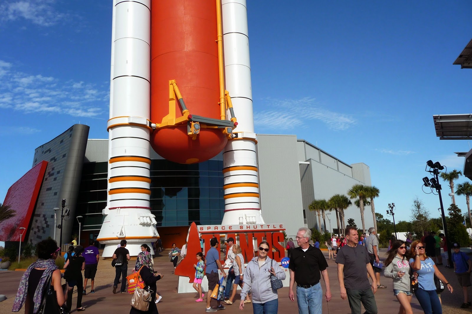 Kennedy Space Centerin koko alue on todella laaja. Pienemmällä alueella on näyttelyalue, jossa päästiin kävelemään, mutta varsinaisella avaruuskeskuksen alueella kierrettiin bussilla. Näyttelyalueella on erilaisia näyttelytiloja, kolmiulotteinen IMAX teatteri ja vaikuttava Atlantis avaruusaluksen esittelyhalli. Bussikuljetuksella taas päästiin hyvin lähellä laukaisualuetta ja nähtiin myös halli, jossa sukkuloita valmistetaan. Kierroksella nähtiin myös valtavan kokoinen laite, jolla kuljetetaan sukkuloita laukaisupaikalle. Kierroksen yksi pysähdyspaikka oli Apollo/Saturn V keskus, jossa esitellään Apollo avaruusohjelmaa ja aivan valtavaa Saturn V rakettia, jota matkoihin käytettiin. Toinen iso halli on siis näyttelyalueella ja siinä näkee Atlantiksen, jolla tehtiin yli 30 onnistunutta avaruuslentoa. Näyttely on todella hyvin toteutettu ja siinä saa tutustua itse Atlantikseen ja kaikkeen muuhun, joka liittyy avaruuteen ja miten avaruussukkuloita rakennetaan. Erittäin opettavainen paikka. Kennedy Space Center on mielestäni erittäin vaikuttava paikka ja jos Orlandossa olet käymässä, kannattaa tässä ehdottomasti käydä.