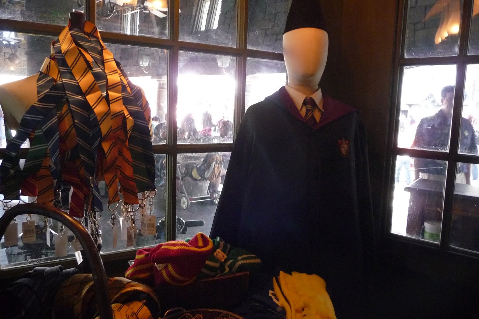 Ensimmäiseksi mentiin siis Island of Aventure huvipuistoon, jossa Harry Potter puisto sijaitsee. Käytiin myös joissakin muissakin laitteissa, mutta kun jokaiseen laitteeseen joutuu jonottamaan noin 1h, siinä ei yhden päivän aikana ehdi käydä kovin monta laitetta. Harry Potter puisto on todella suosittu ja ihmisiä oli alueella aivan valtavasti. Mieheni lähti yhteen laitteeseen, johon en uskaltanut mennä eli mulla oli hyvin aikaa tutkia Harry Potterin puisto oikein kunnolla. Kävin kaupoissa, jotka ovat kun suoraan leffasta. Eli siellä myytiin taikasauvoja, kyniä, vihkoja, vaatteita, karkkeja, pehmopöllöjä ja kaikkea muuta tavaraa, jotka ovat tulleet tutuksi Harry Potter leffoista. Hintataso tarvaroille on kyllä todella tyyris eli päätin sitten olla ostamatta mitään. Harry Potter puistossa on myös linna, johon jouduttiin jonottamaan 1,5 h. Linna on kuitenkin sisältä todella vaikuttava eli voi sanoa, että tämä on todella hyvä kopio leffoissa nähdystä linnasta.