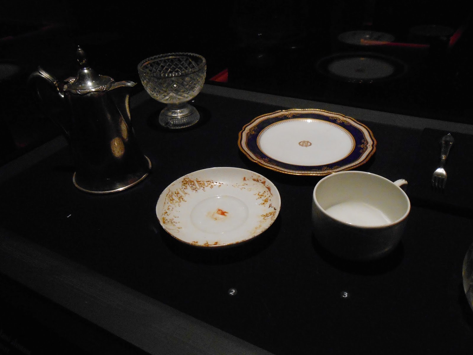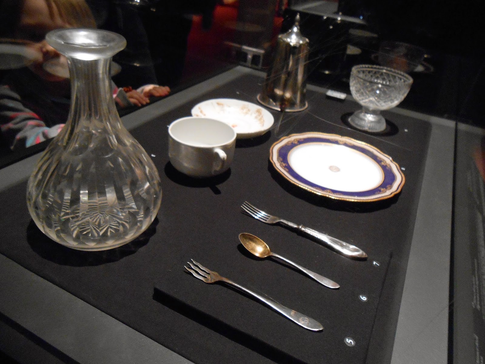 Seuraavaksi siirryttiin ykkösluokan käytävää pitkin tarkastelemaan ykkösluokan hyttejä, asioita, ruokalistoja ja muita mielenkiintoisia tavaroita (esim. sen ajan rahoja ja koruja). Kaiken kaikkiaan näyttelyssä oli yli 150 meren pohjasta nostettua alkuperäisesinettä. Myös hyttikäytävät ja hytit esiteltiin aidossa mittakaavassa.